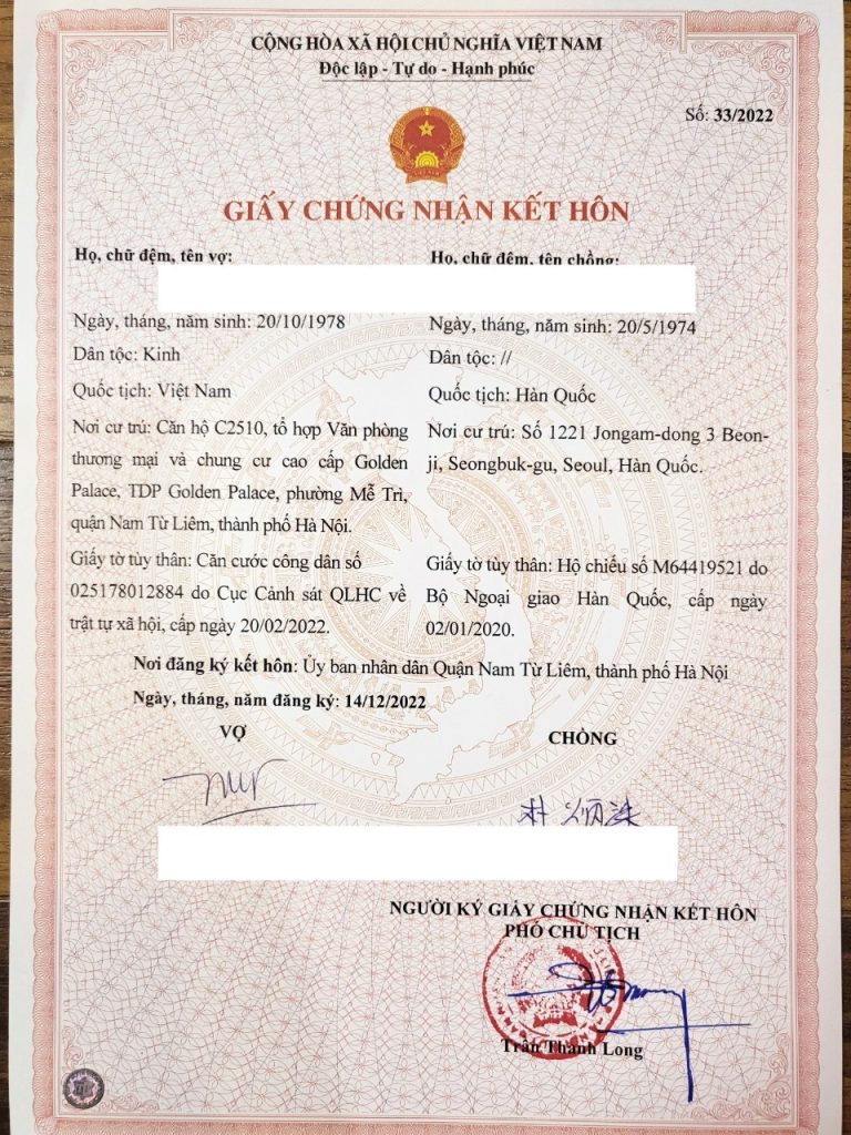 Xem thêm: Thủ tục kết hôn với người Hàn Quốc.