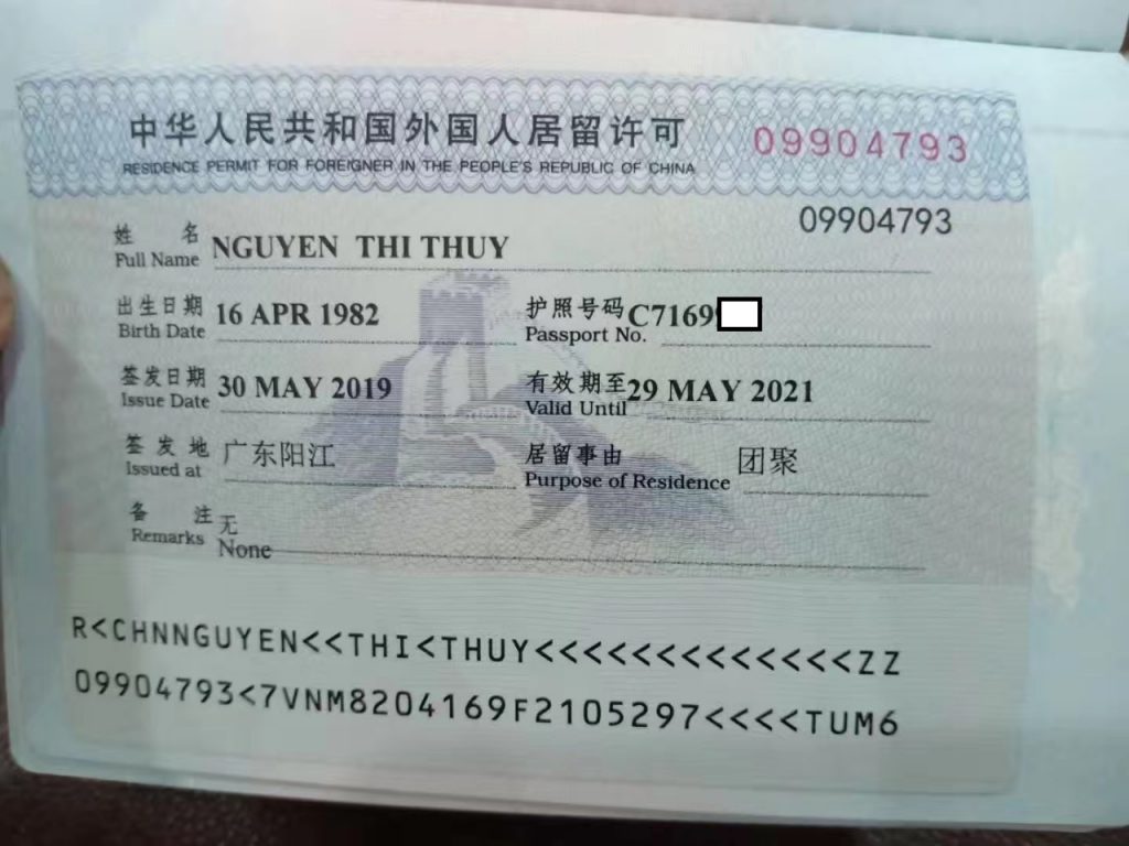 4. Sau khi nhập cảnh vào Trung Quốc, người Việt xin visa dài hạn tại Trung Quốc.