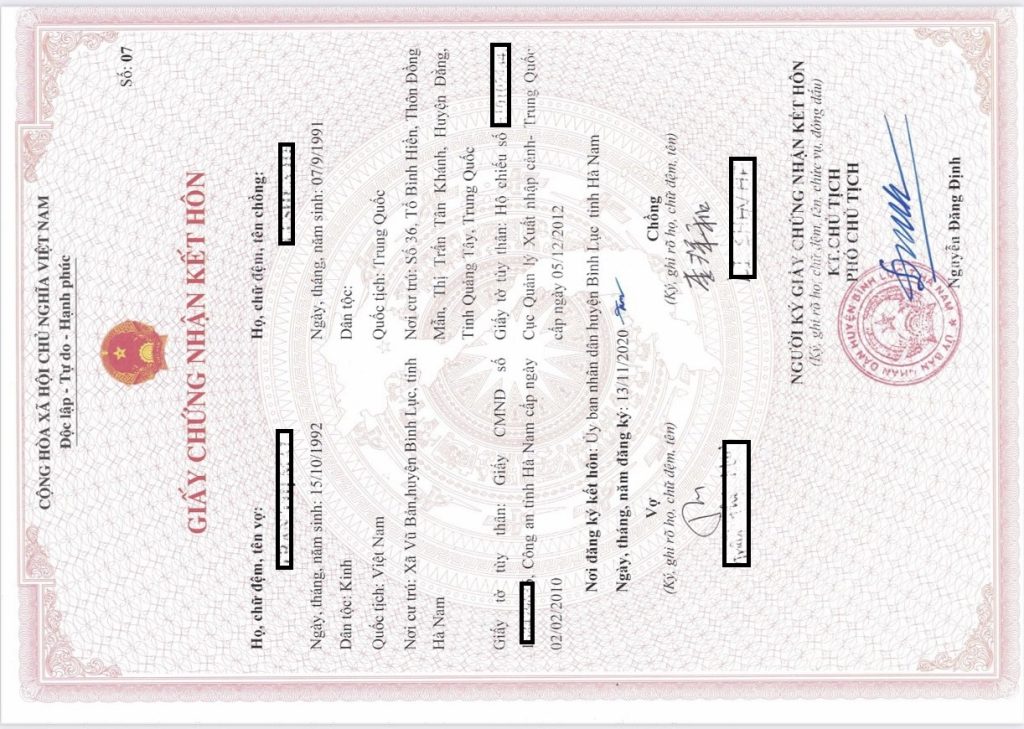 Lưu ý: Kể từ ngày 01/7/2025, Việt Nam bỏ đơn vị hành chính cấp huyện và thủ tục kết hôn với người nước ngoài người Việt Nam định cư tại nước ngoài thực hiện tại UBND cấp xã, nơi công dân Việt Nam cư trú (Điều 4, Nghị định 120/2025/NĐ-C). Thời hạn giải quyết thủ tục kết hôn tại UBND cấp xã có yếu tố nước ngoài là 5 ngày làm việc, trường hợp cần xác minh thì thời hạn tối đa không quá 10 ngày làm việc.