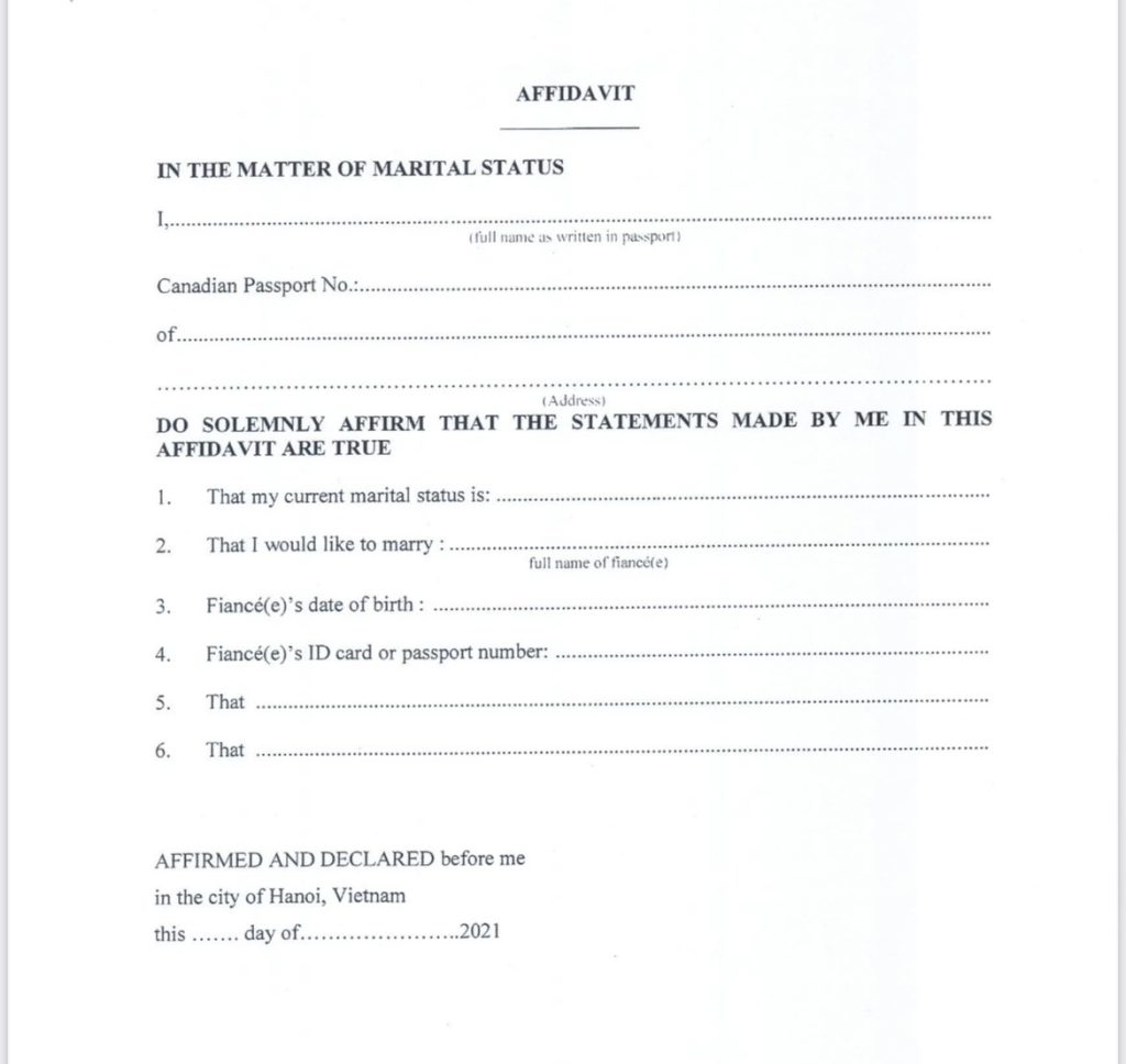 Giấy độc thân của người Canada | Thủ tục kết hôn với người Canada