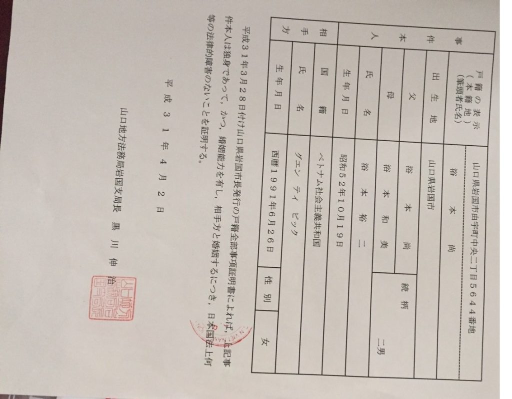 - Giấy xác nhận tình trạng hôn nhân của người Việt dùng để đăng ký kết hôn với người Nhật Bản (bản dịch trên bản chính);