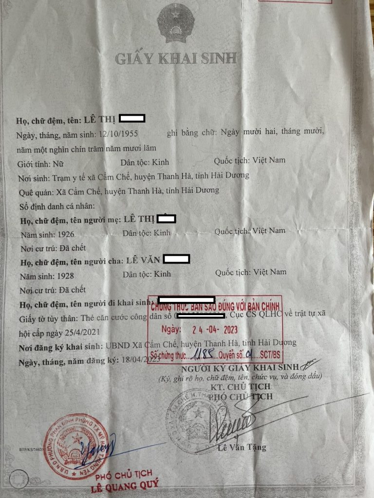 Xem thêm:Khai sinh cho con có cha hoặc mẹ là người nước ngoài