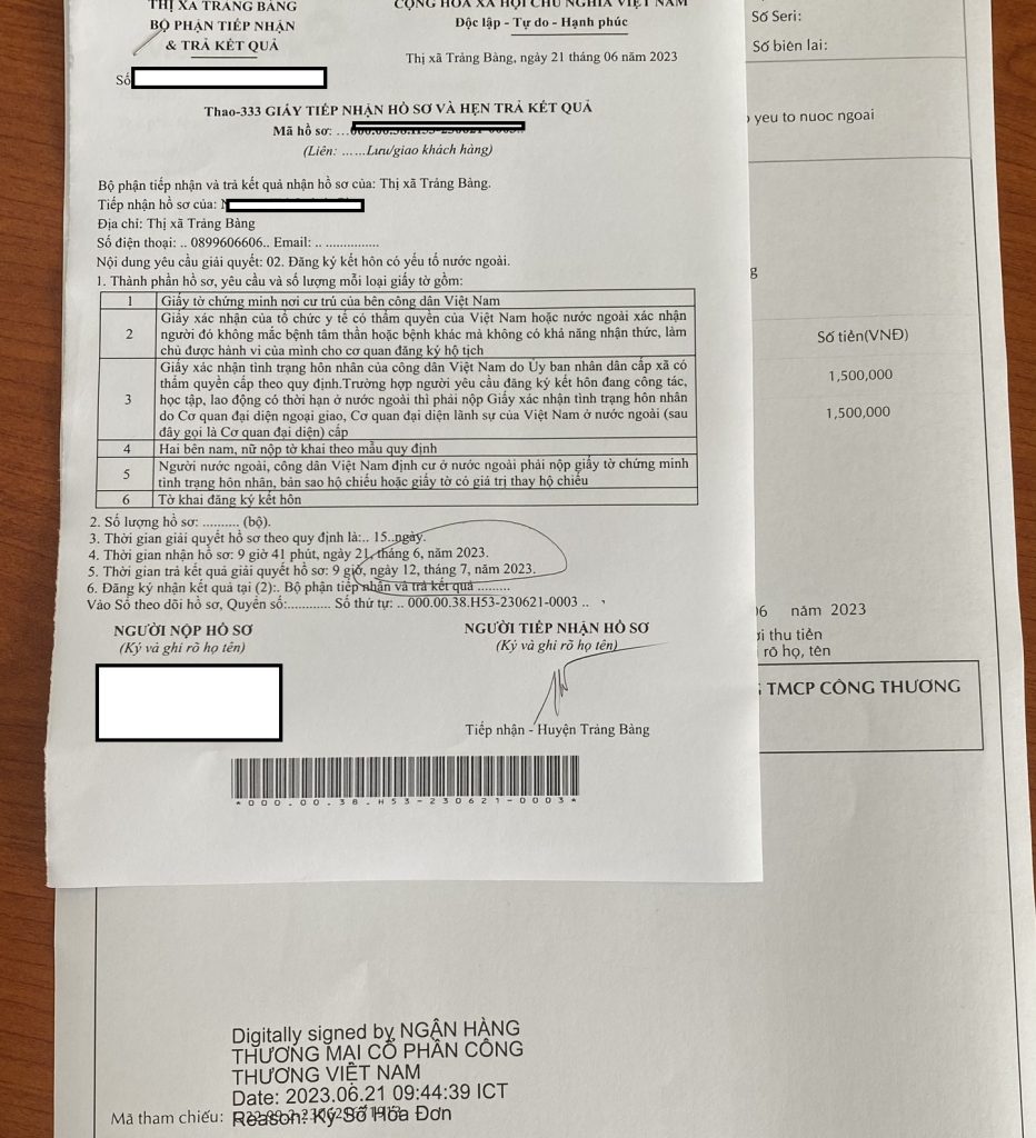 – Người tiếp nhận hồ sơ có trách nhiệm kiểm tra các giấy tờ để đối chiếu thông tin trong Tờ khai và tính hợp lệ của giấy tờ trong hồ sơ do người yêu cầu nộp, xuất trình; trường hợp hồ sơ chưa đầy đủ thì hướng dẫn người yêu cầu bổ sung hoàn thiện. Nếu hồ sơ đầy đủ, hợp lệ, người tiếp nhận hồ sơ viết giấy tiếp nhận, trong đó ghi rõ ngày, giờ trả kết quả.